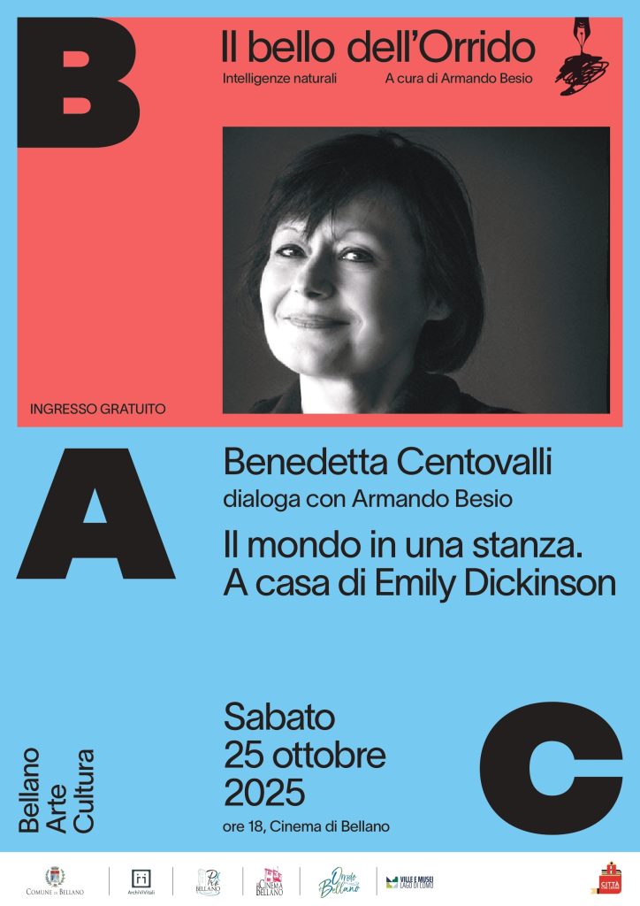 Sabato 25 ottobre ospite della serata (ore 18 – cinema di Bellano, ingresso gratuito) è Benedetta Centovalli, editor e agente letteraria, tra le più autorevoli studiose della narrativa contemporanea, in dialogo con il curatore della rassegna Armando Besio sul tema “Il mondo in una stanza. A casa di Emily Dickinson”.