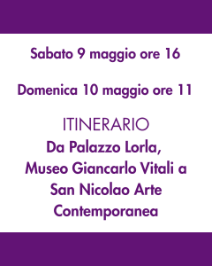 L’itinerario inizia da Palazzo Lorla, edificio in stile barocco risalente alla fine del ‘600 situato nel centro storico di Bellano e appartenuto alla nobile e omonima famiglia, che oggi, profondamente restaurato, ospita il Museo Giancarlo Vitali (1929-2018) pittore e incisore bellanese. Il percorso prosegue nelle contrade storiche del borgo lacustre per arrivare a San Nicolao Arte Contemporanea ex chiesa Medioevale che, a seguito di interventi di recupero conservativo, ospita al piano terra esposizione d’arte contemporanea temporanee e al primo piano la collezione permanente delle sculture in rame di Danilo Vitali.