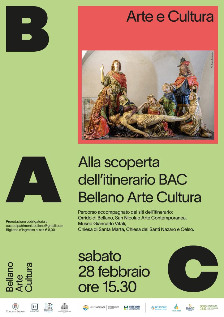 Percorso accompagnato dai Custodi del Patrimonio di Bellano nei siti dell’itinerario BAC Bellano Arte Cultura: Orrido di Bellano, San Nicolao Arte Contemporanea, Museo Giancarlo Vitali, Chiesa di Santa Marta e Chiesa dei Santi Nazaro e Celso.